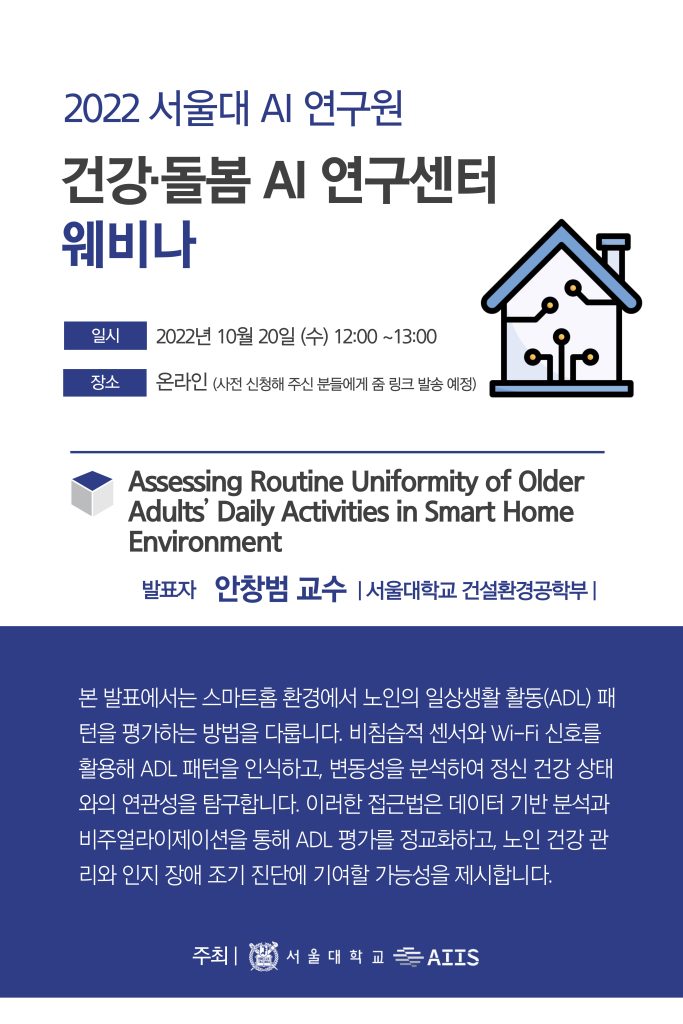 This talk presents methods for assessing Activities of Daily Living (ADL) patterns in smart home environments using non-intrusive sensors and Wi-Fi signals. By analyzing behavioral variability, the study explores correlations with mental health status. The approach leverages data-driven analytics and visualization to refine ADL assessment, offering potential contributions to elderly care and early detection of cognitive decline.